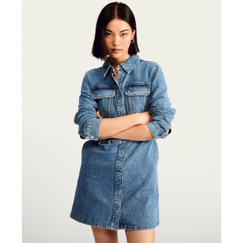 Pure Cotton Denim Utility Mini Dress in Blue