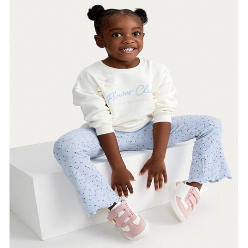 F&F Girls 2-Piece Cotton Rich Flower Club Sweatshirt and Leggings Set in Multi Blue