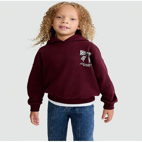 F&F Girls Cotton Rich Adventures in Style Slogan Hoodie in Burgundy