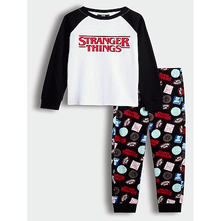 Netflix Stranger Things Pure Cotton Slogan Pyjamas in Black Multi