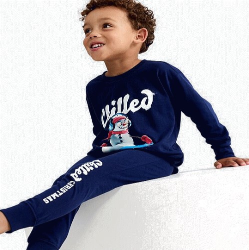 Boys Pure Cotton Happy Howlidays Top and Cuffed Joggers Pyjamas in Navy Multi