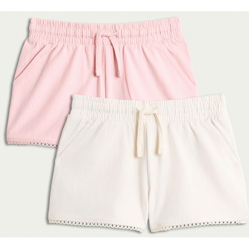 F&F Girls 2-Pack Pure Cotton Lace Trim Shorts in Multi Pink