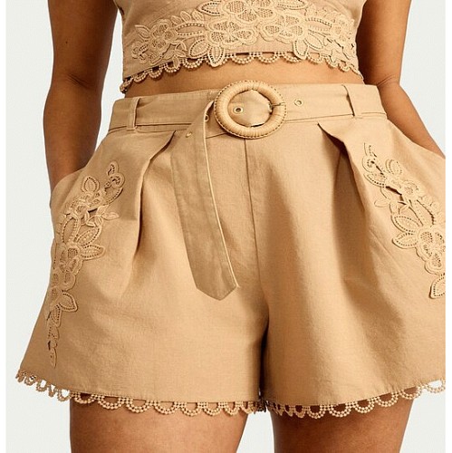 The F&F Edit Cotton Rich Embroidered Belted Co-ord Shorts in Camel