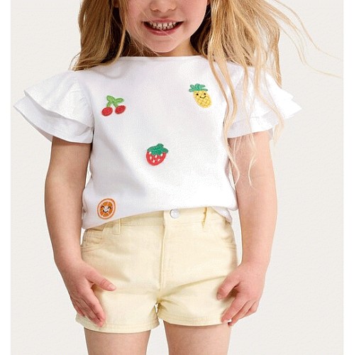 F&F Girls Pure Cotton Fruit Embroidered Button Up Denim Jacket in Blue