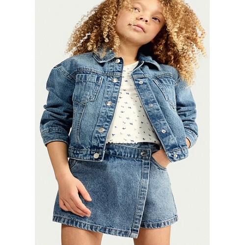 F&F Girls Pure Cotton Denim Wrap Skort in Blue