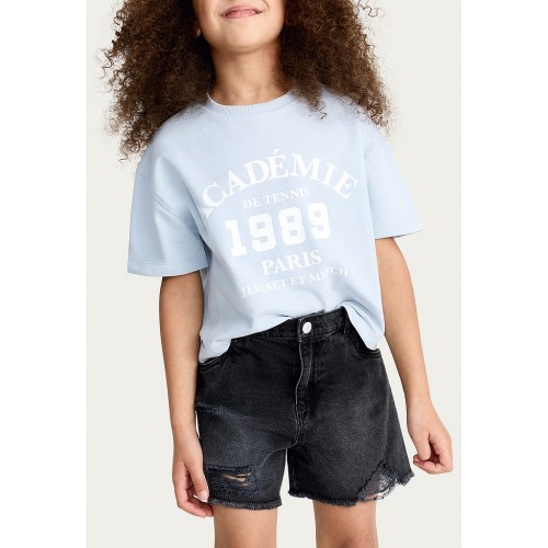 F&F Girls Pure Cotton Distressed Frayed Hem Shorts in Black