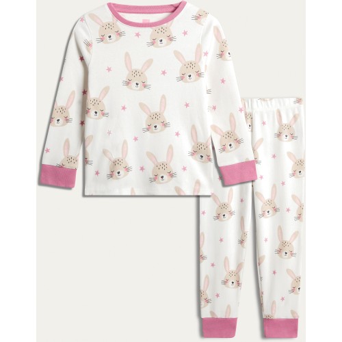Girls Pure Cotton Bunny Print Top and Joggers Pyjamas in Multi