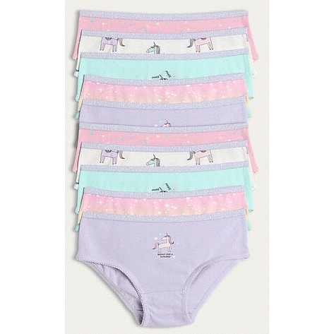 Girls 10-Pack Pure Cotton Unicorn Print Briefs in Multi