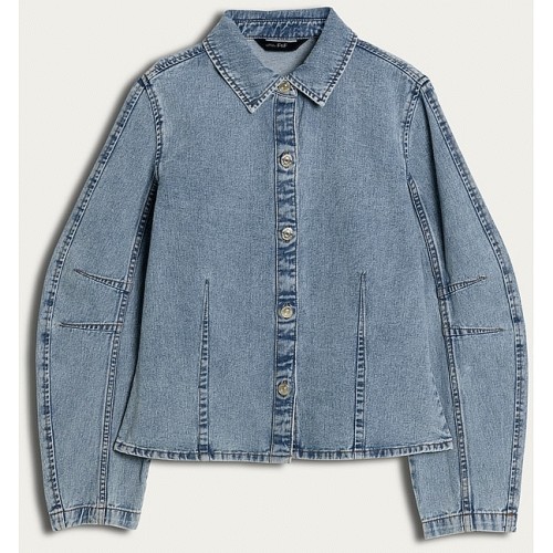 The F&F Edit Cotton Rich Denim Button Up Long Sleeved Shirt in Blue