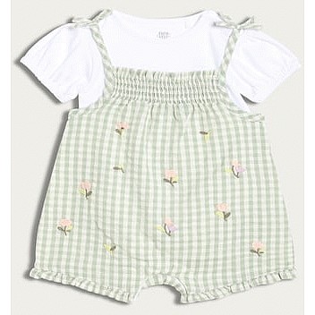 2-Piece Pure Cotton Gingham Romper and Bodysuit Set in Green