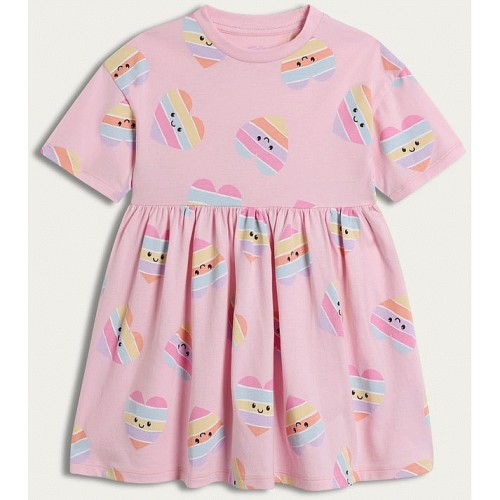 F&F Girls Pure Cotton Heart Print Short Sleeved Dress in Multi Pink