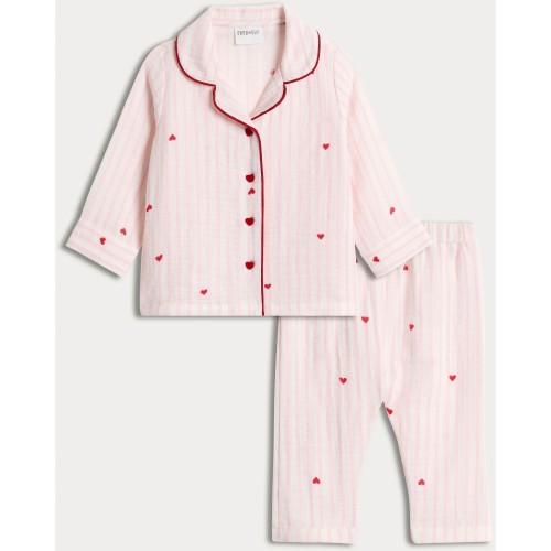 2-Piece Pure Cotton Heart Print Pyjama Set in Pink