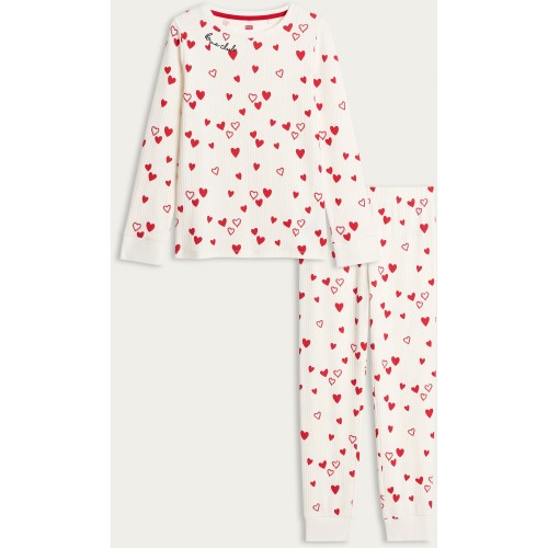Girls Cotton Rich Heart Print Pyjama Set in Multi