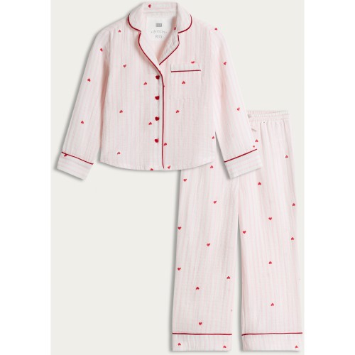 Girls Pure Cotton Heart Print Pyjama Set in Multi