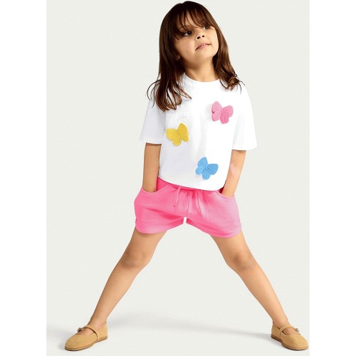 F&F Girls 2-Piece Pure Cotton Butterfly T-Shirt and Shorts Set in Multi Pink