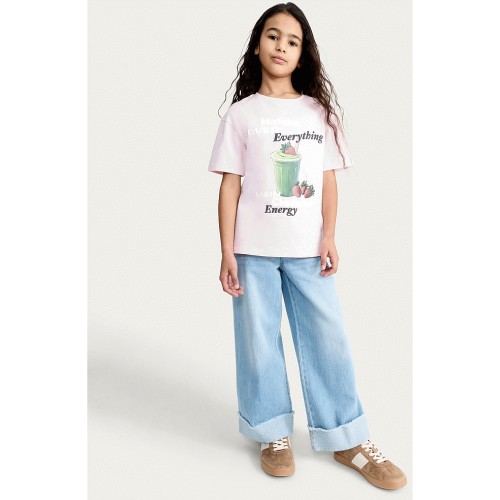 F&F Girls Pure Cotton Matcha Over Everything T-Shirt in Pink