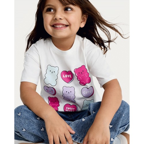 F&F Girls Pure Cotton Gummy Bear Print T-Shirt in White