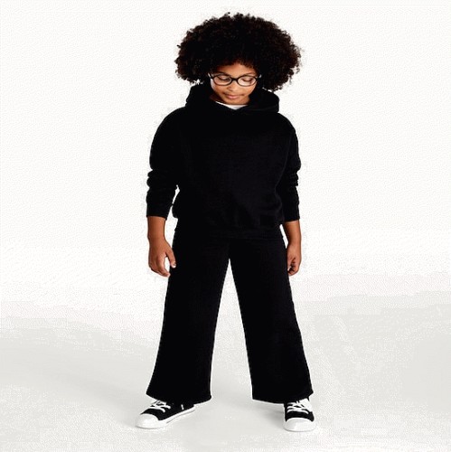 F&F Girls Cotton Rich Wide Leg Joggers in Black