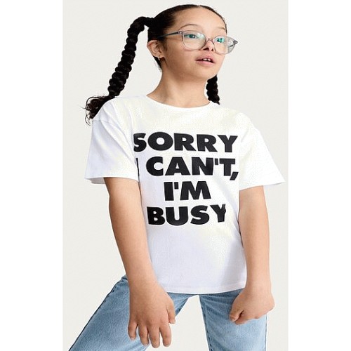 F&F Girls Pure Cotton Sorry I Can't T-Shirt in White