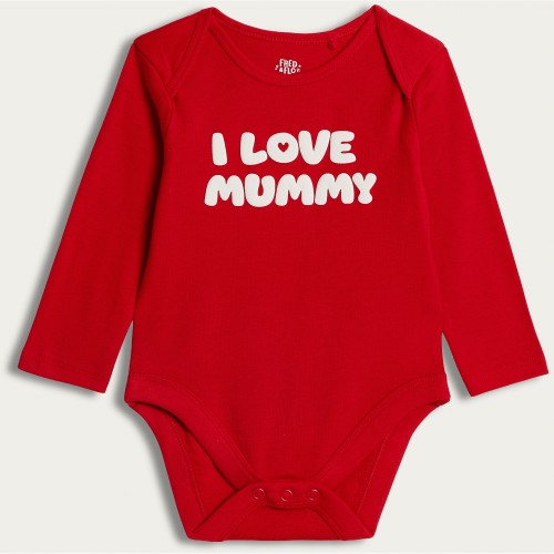 Pure Cotton I Love Mummy Long Sleeved Bodysuit in Red