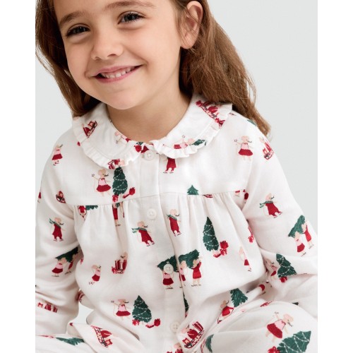 Girls Pure Cotton Christmas Print Shirt and Bottom Pyjamas in Multi