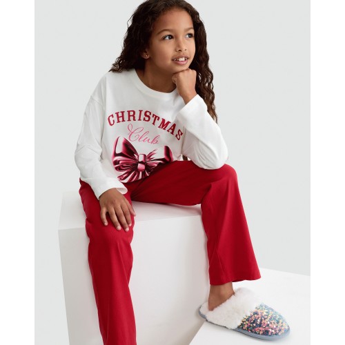 Girls Pure Cotton Christmas Club Slogan Pyjamas in Multi