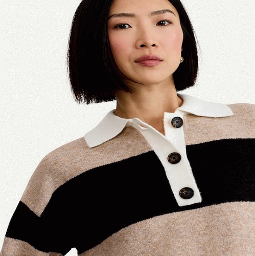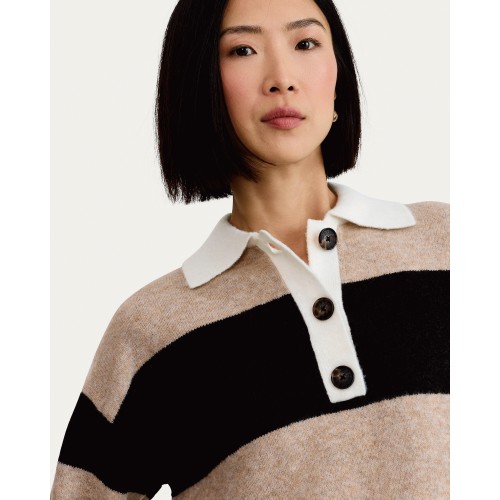 Knitted Stripe Rugby Shirt in Multi Brown