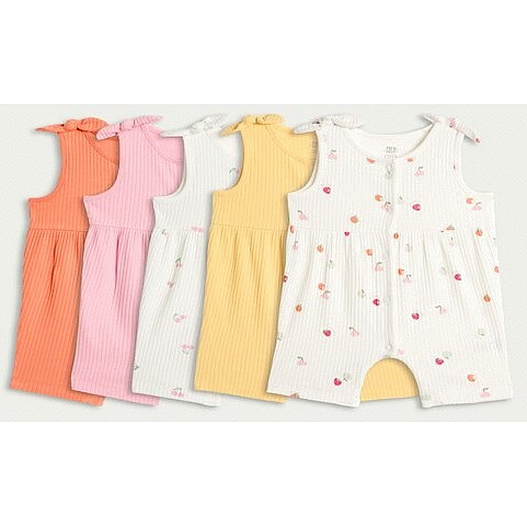 5-Pack Cotton Rich Ribbed Bow Strap Rompers in Orange