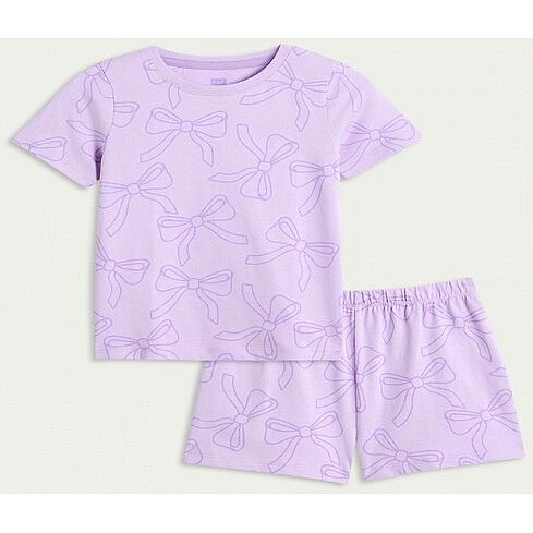 Girls Pure Cotton Bow Print Pyjama Set in Lilac