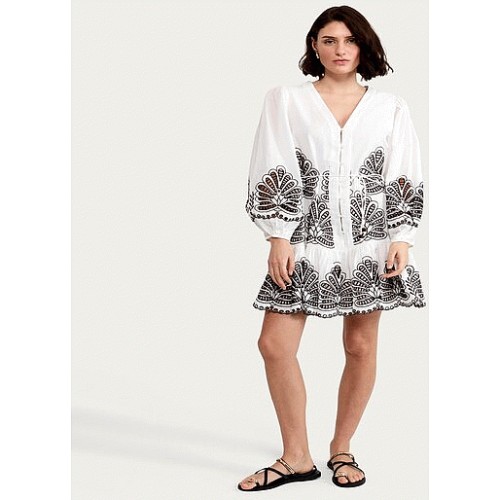 The F&F Edit Pure Cotton Embroidered Buttoned Mini Dress in Multi Red