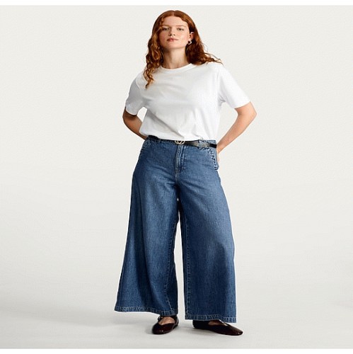 Pure Cotton High Rise Wide Leg Jeans in Blue