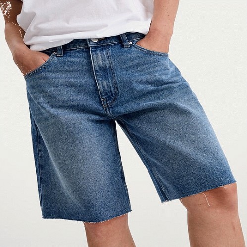 Pure Cotton High-Waisted Denim Jorts in Blue