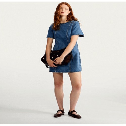 Pure Cotton Denim Panelled Mini Dress in Blue