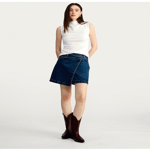 Pure Cotton Denim Wrap Mini Skirt in Navy