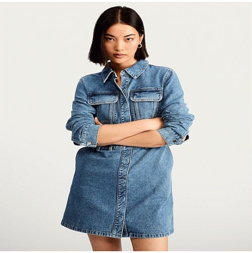 The F&F Edit Pure Cotton Pocket Detail Denim Shirt Dress in Navy