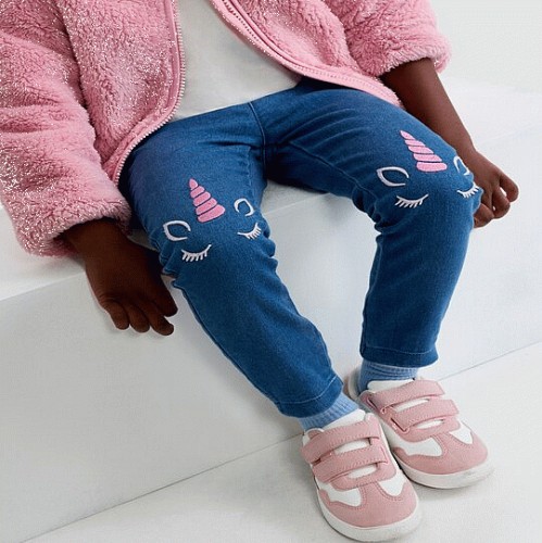 F&F Girls Cotton Rich Unicorn Embroidered Jeans in Blue