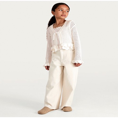 F&F Girls Cotton Rich Ruffle Hem Open Knit Cardigan in Cream