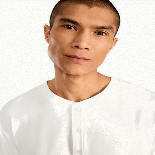 Pure Cotton Henley Long Sleeved Top in Ecru