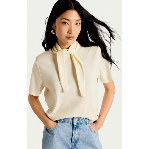 The F&F Edit Pure Cotton Tie Neck T-Shirt in Cream