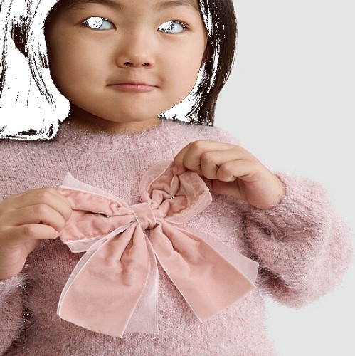 F&F Girls Sparkle Velvet Bow Jumper in Pink
