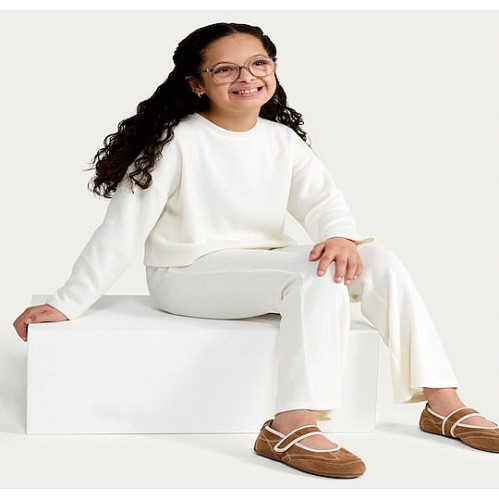 F&F Girls Ribbed Lace Trim Long Sleeved Top in Blue