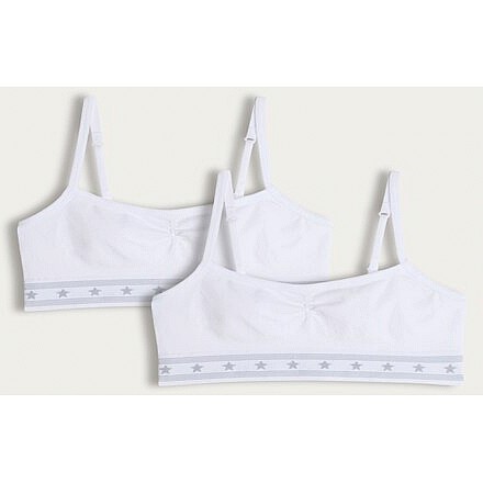 Girls 2-Pack Ribbed Star Print Strappy Crop Tops in White