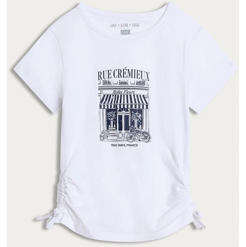 F&F Girls Cotton Rich Ruched Side Graphic T-Shirt in White