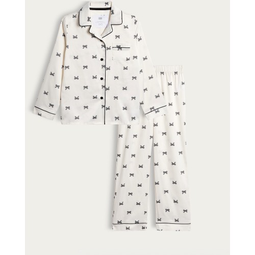 Satin Bow Print Pyjama Set in Pink