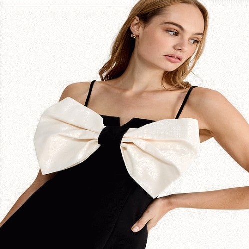 The F&F Edit Satin Bow Detail Strappy Slip Dress in Black