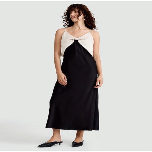 The F&F Edit Satin Bow Detail Strappy Slip Dress in Black