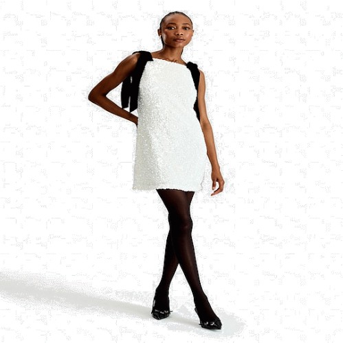 F&F Girls Sequin Bow Jumper Dress in Cream