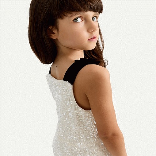 F&F Girls Velvet Strap Sequin Dress in Cream