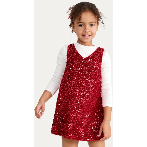 F&F Girls 2-Piece Sequin Embellished Dress and Long Sleeved Top Set in Red