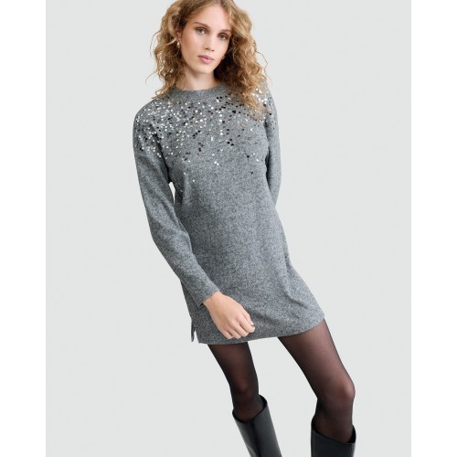 Sequin Embellished Boxy Short Sleeved Top in Brown